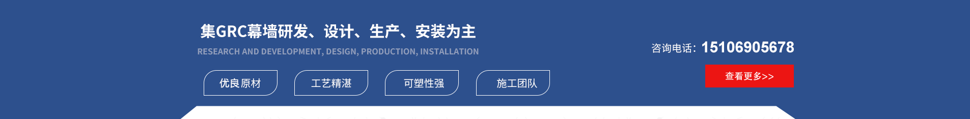 • 是一家集GRC幕墻研發(fā)、設(shè)計、生產(chǎn)、安裝為主,融GRG、GRP等新型建筑材料創(chuàng)新應(yīng)用為一體的技術(shù)企業(yè)。